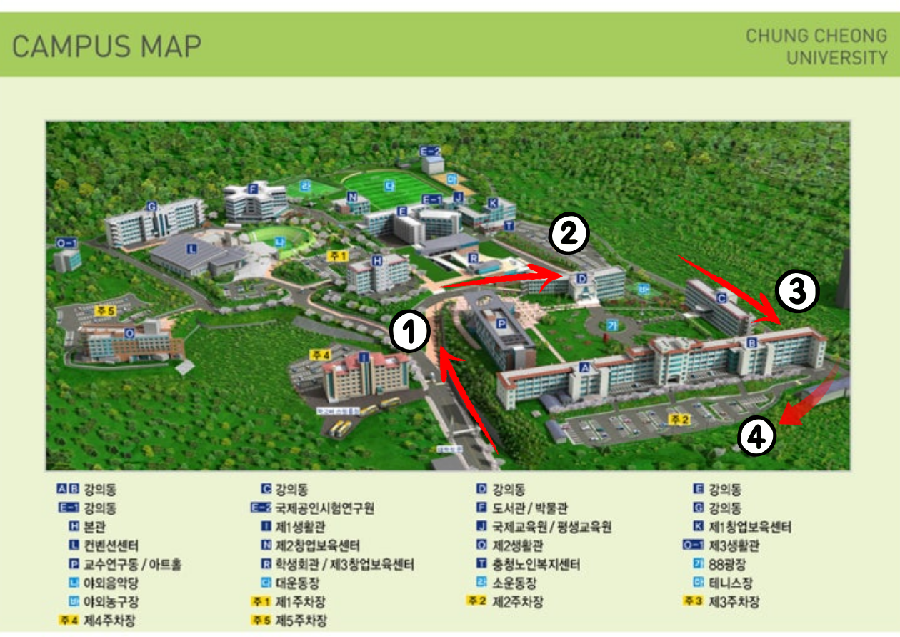 [ 2026학년도 신입생 모집 수시1차 관련 안내 ] - 면접 기간 : 2025. 10. 17 (금) ~ 10. 18 (토) (1) 2025. 10. 17 (금) : 10시 00분 ~ 17시 30분 (2) 2025. 10. 18 (토) : 09시 30분 ~ 11시 30분 - 면접 장소 - (1) 면접 대기 장소 : 형설각 A동 202호 강의실 - (2) 면접 장소 : 문예관 P동 309호, 313호, 317호 - (3) 과 사무실 : 형설각 A동 105호 - (4) 보호자 대기 장소 : 문예관 P동 1층 - 면접 예약 접수 (1) 2025. 10. 10 (금) 13:00 ~ 10. 14 (화) 17:30 * 원하는 시간에 면접 예약 접수하면 됩니다. * 참석이 불가한 경우 전화면접 가능하며, 전화면접 신청은 ( 043-230-2150 ) 문의하시기 바랍니다. - 면접 기타 질문 (1) 면접은 1:1로 진행되며, 예상 질문과 캠퍼스 맵은 학과 홈페이지 공지사항에 게시되어 있습니다. (2) 보호자는 학생 면접 장소에 입장할 수 없으며, 보호자 대기실 이용 바랍니다. (3) 면접 시간대에 인원이 많을 시, 대기할 수 있습니다. (4) 궁금한 사항은 ( 043-230-2150 ) 문의하시기 바랍니다. - - - - - 단체 문자 재공지 입니다. - - - - - - 아래 첨부 파일 캠퍼스 맵과 면접 예상 문제가 첨부되어 있으니 참고하여 면접 준비 하시기 바랍니다. - 전화면접자는 13일 또는 14일 오전 안내 문자가 발송될 예정이오니 참고 바랍니다. * 캠퍼스 맵 안내 (차량 이동 면접자) (1) 대학 정문으로 직진 후 두 갈래 길 중 오른쪽 방향 언덕으로 이동합니다. (2) 언덕을 내려가면 농구장 앞에서 우회전하여 길을 따라 이동합니다. (3) 길을 따라 올라오시면 두갈래 길이 있습니다. 두 갈래 전부 주차장 길이며 편한 곳에 주차하면 됩니다. * 캠퍼스 맵 안내 (도보 이용 면접자) (1) 대학 정문으로 직진 후 오른쪽 방향 언덕으로 이동합니다. (2) 좌 R동, 우 P동이 보일 때 P동 방향으로 걷다보면 P동 옆, A동이 보입니다. 2026학년도 경찰행정과에 지원해주신 학생 여러분! 응원합니다. 학교에서 만나요~ |